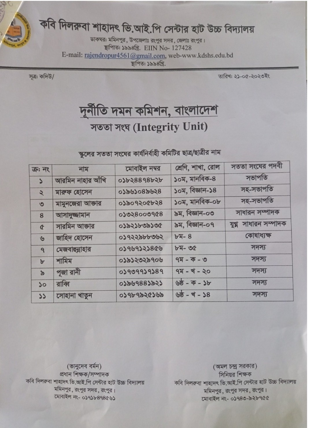 Kabi Dilruba Shahadat V I P Sentarhat High School, Rangpur.
